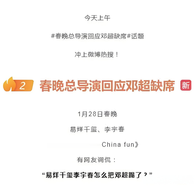 还有李宇春跟易烊千玺的节目,竟然让没有上春晚的邓超上了热搜。